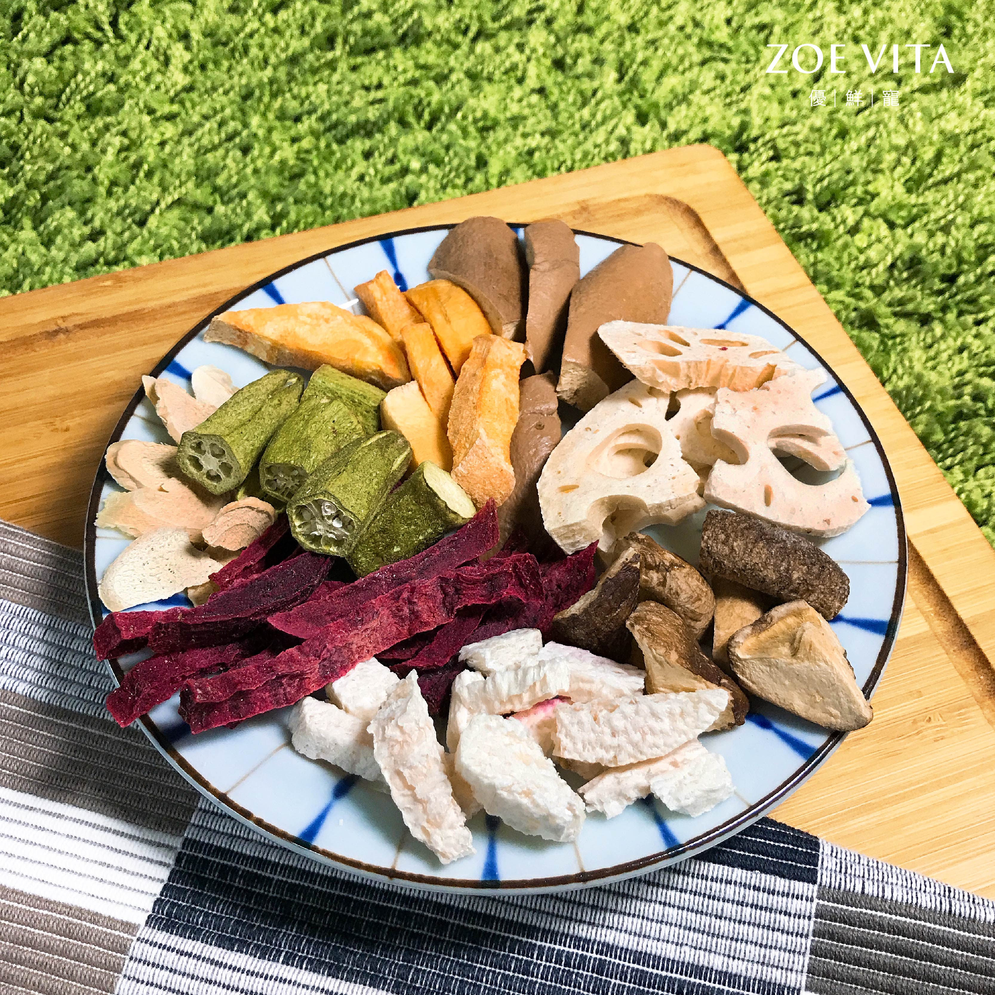 採用當季野菜時蔬新鮮烘培冷凍乾燥製成。保留食材的原本營養,酵素,風味,避免高溫而營養流失。