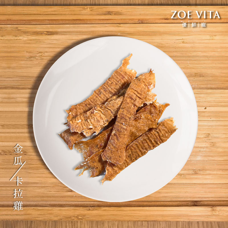 採用人食完全相同天然食材製成、人食亦可。僅以新鮮南瓜和鮮嫩雞肉揉合製作而成的美味零食、完全不含麵粉、香脆...