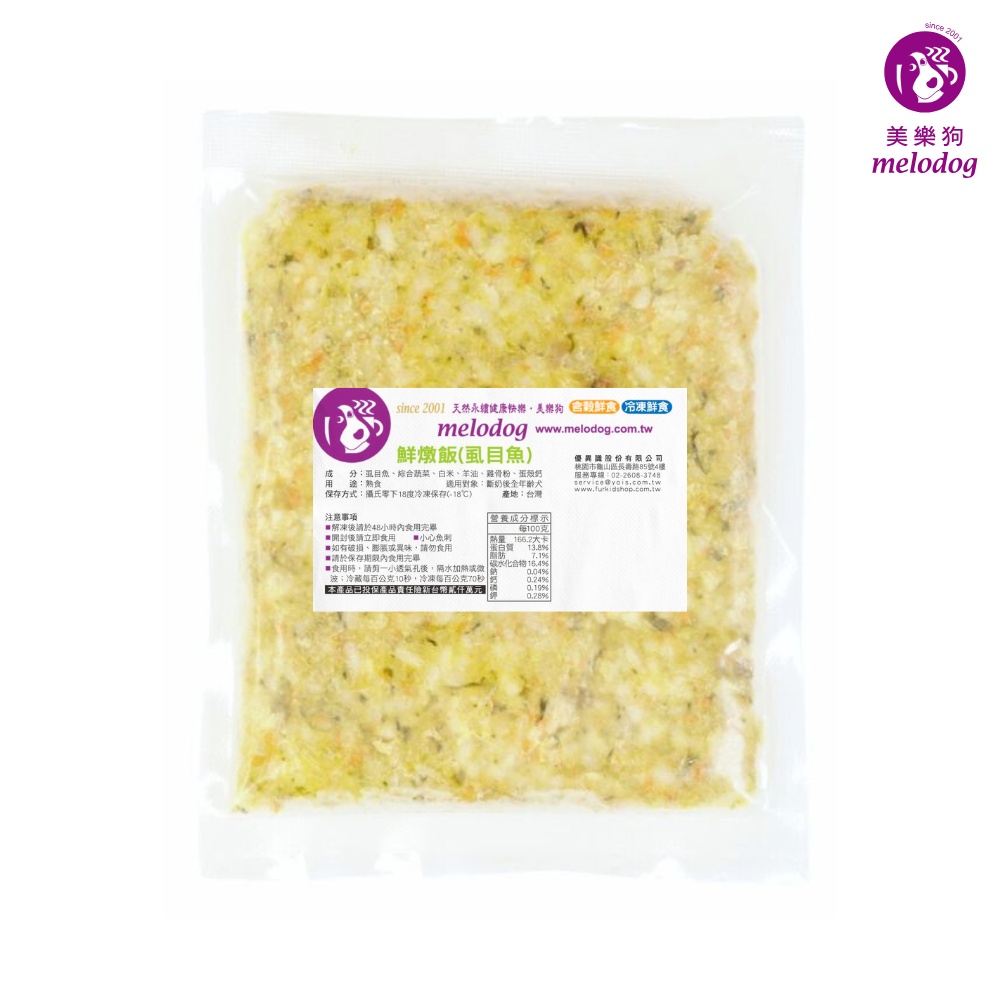 鮮燉飯系列(含穀鮮食) 虱目魚口味 鮮燉飯方便餵食,嗜口性佳。多種口味,長期食用可達到鮮食營養均衡,多樣輪替的健康目的。
